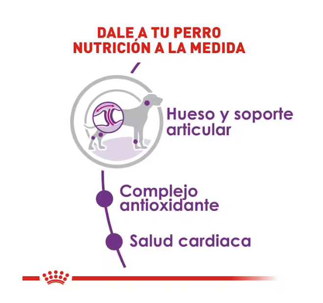 Ayuda a promover la salud de los huesos y de las articulaciones de los perros de razas gigantes, que pueden resentirse debido al peso de su cuerpo.