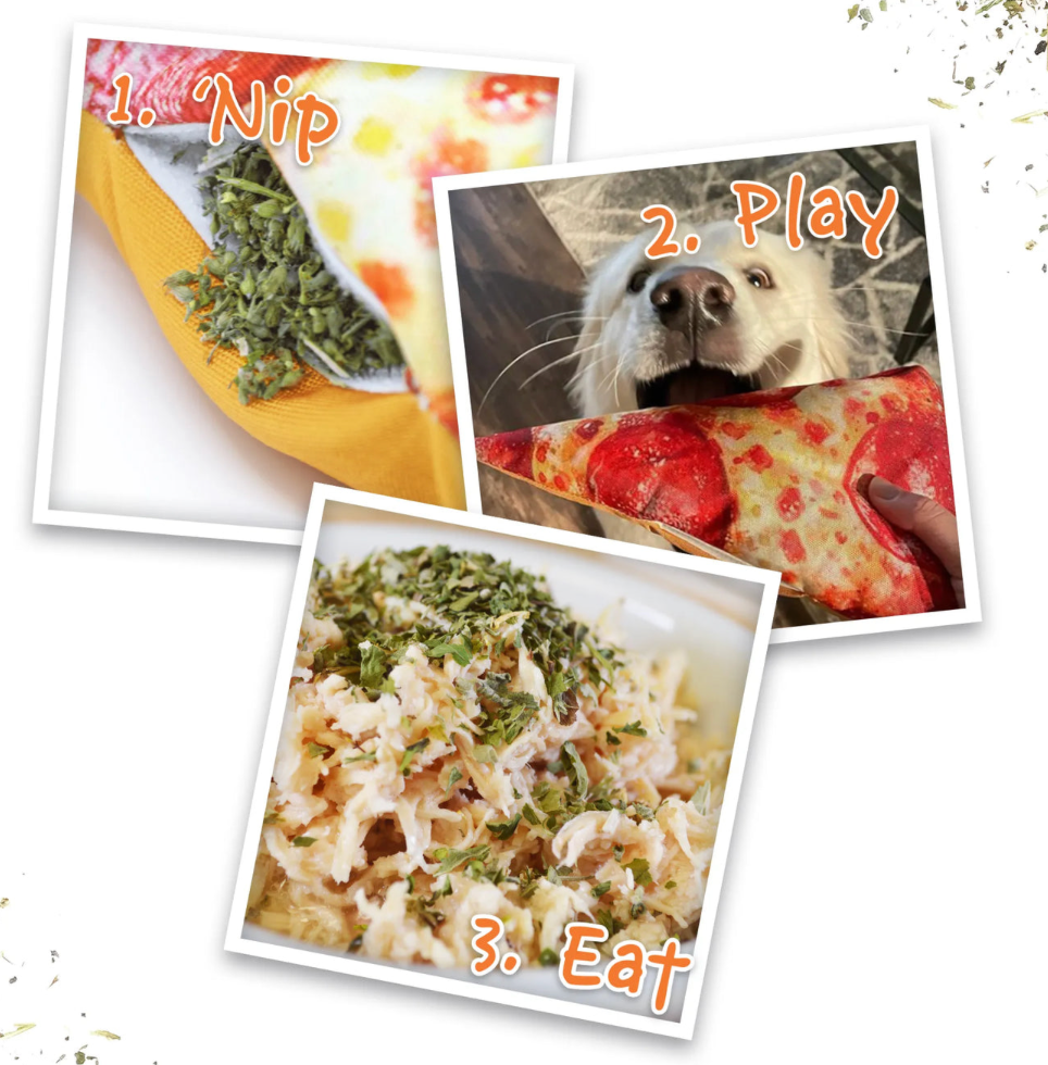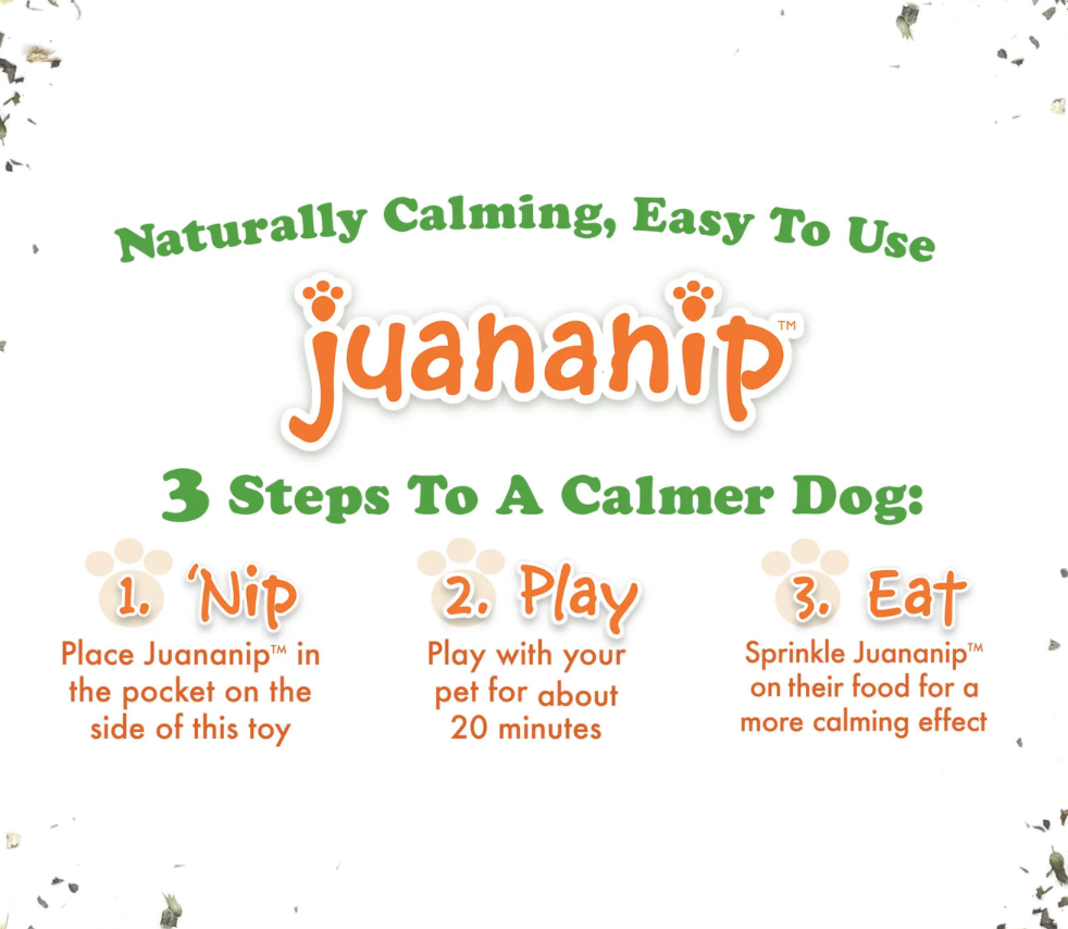 Juananip tiene un efecto calmante en los perros. Los relaja a un lugar de paz y tranquilidad que todos anhelan. Hemos perfeccionado un gran sistema de entrega para nuestro Juananip con nuestros juguetes recargables y divertidos hechos para pawtiers. Disfruta un poco ahora mismo con nuestro juguete de pizza recargable. Mete una pizca en la bolsa para una sesión saludable de juego a mano que facilitará a tu perro el doggi-vana. Juega más tiempo.