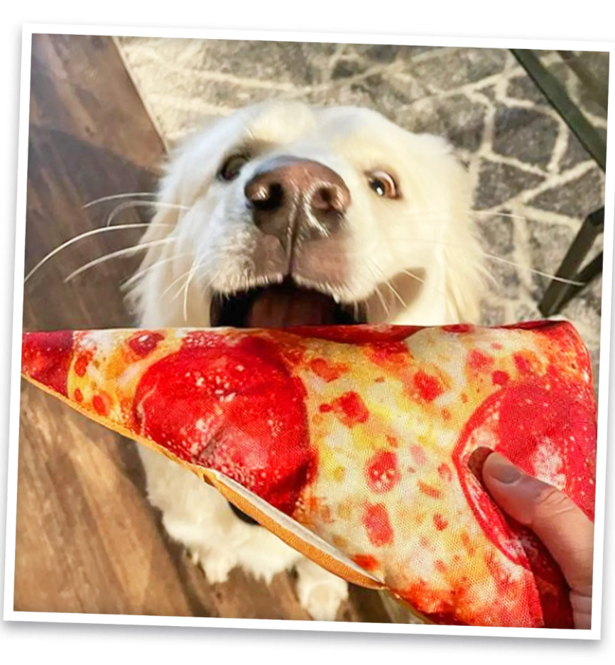 No hagas que tu cachorro espere a la entrega, ¡toma esta rebanada de pizza de felpa hoy y desata la diversión!