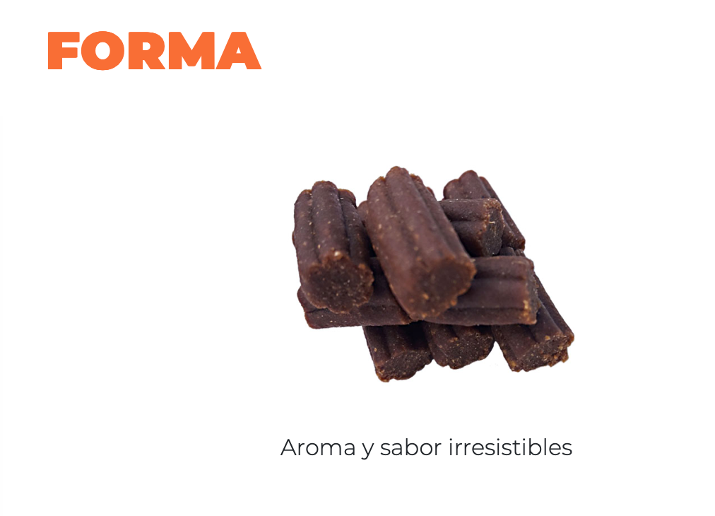 Harina de carne de pollo, arroz, almidón de maíz, agua, sorbitol, sabor natural de pollo, hidrolizado de pescado, aceite de soya, propilenglicol, ácidos grasos omega 3 (EPA/DHA), salvado de trigo, sorbato de potasio (como conservador), vitaminas C, E, complejo B, mezcla de romero y tocoferoles.